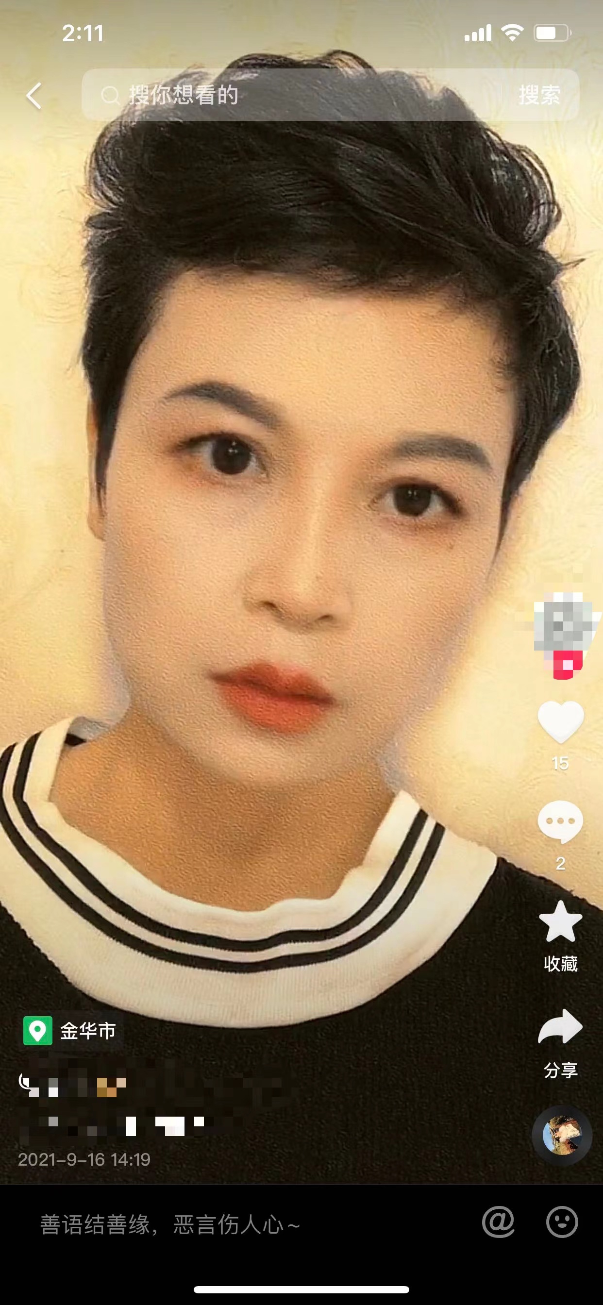 lwq22354 (ID:25686)人气:920 查看资料女 29周岁 未婚 170厘米 硕士 国企正式工 2万~5万元 工作地 :浙江-金华-婺城区 籍贯:浙江-金华-永康市 个人独白:喜欢书法,古筝,写作